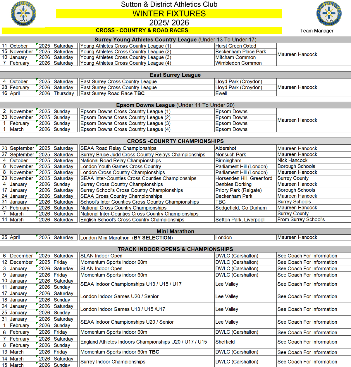 > You can download the Winter Fixtures list HERE